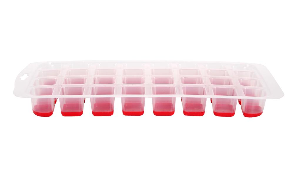 Velké tvořítko na led Jumbo - 32 kostek. Tvořítko slouží jako výrobna ledu pro studené nápoje, střiky, ledové čaje a koktejly. Je to především skvělý pomocník při letních oslavách a párty, kdy čekáte více hostů.#Tvořítko naplňte vodou a vložte do mrazničky.#Materiál plast. Barva červená.