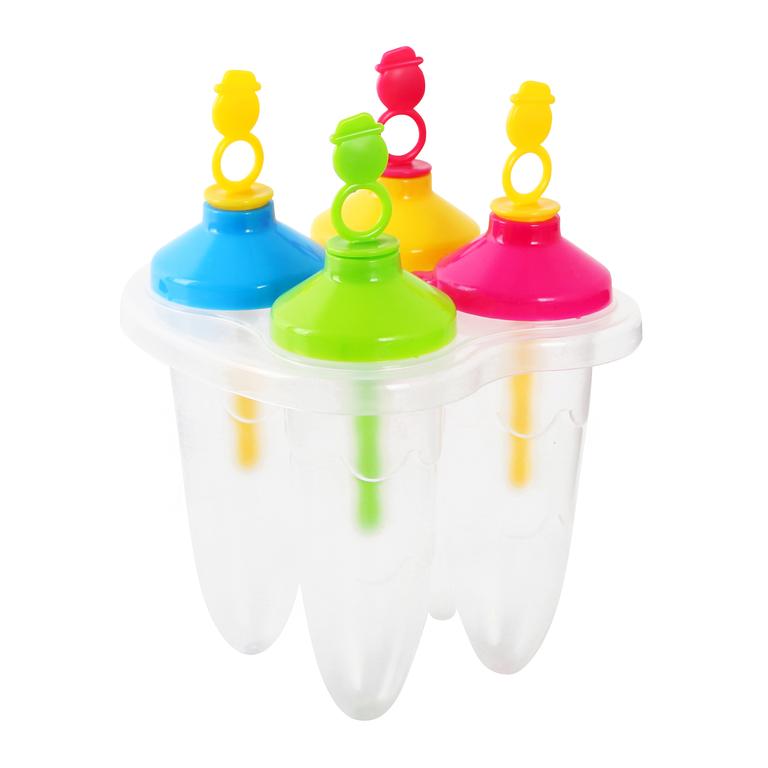 Tvořítko na zmrzlinu - sada 4 ks. Tvořítko na zmrzlinu je skvělá pomůcka pro vytvoření domácích zmrzlin, sorbetů apod. Provedení pro snadné použití v mrazničce, vyrobeno z kvalitního plastu. Pro snadnější vyklopení zmrzliny nejprve opláchněte vlahou vodou. Rozměry - 11,5 x 10,5 x 15,5 cm. Objem jedné formičky tvořítka 76 ml. Barva čirá s barevnými držátky.