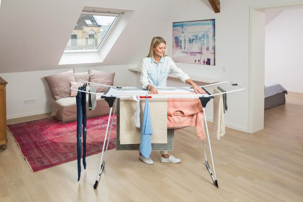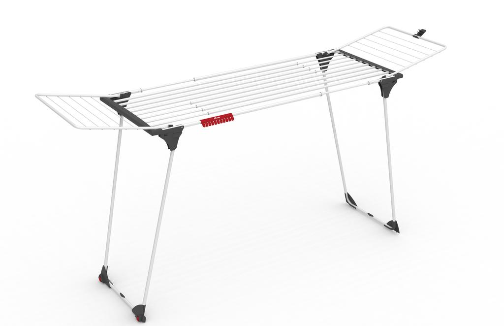 Roztahovací ocelový sušák VILEDA INFINITY s maximální sušící plochou 27 m. Chytré a snadné použití: díky centrálním drátům, které lze prodloužit až na 189 cm, je vhodný pro každodenní prádlo nebo pro sušení velkých předmětů, jako jsou prostěradla a ubrusy. S bočními křídly dosahuje maximální rozměr až 257 cm, což vám pomůže optimalizovat prostor pro sušení podle vašich potřeb. Velmi snadno vysušíte velké množství prádla, ale také spodní prádlo a ponožky díky držáku pro malé předměty. Silné centrální dráty zabrání mačkání prádla, což následně zkracuje čas žehlení. Rovnoběžné ocelové nohy sušáku zaručují větší stabilitu a robustnost výrobku a jejich speciální kloub zabrání jakémukoli náhodnému uzavření, i když sušák přesouváte. Rozměr rozložený (š x h x v): 186-257 x 57 x 100 cm. Rozměr složený (š x h x v): 57 x 12 x 117.5 cm . Sušící plocha: 27 m. Ideální pro ubrusy a prostěradla, délku centrálních drátů lze nastavit podle potřeby a sušák dosahuje maximální rozměr až 257 cm . Velmi komfortní pro velké a dlouhé prádlo díky 1m výšce sušáku. Silné centrální dráty, které zabrání mačkání prádla. Robustní a stabilní, což zajišťují extra bezpečné a stabilní nohy. S držákem pro malé předměty, kolečky pro snadné přemisťování a zámkem křídel pro bezpečné skladování při sušení prádla se smí používat venku, nicméně skladovat doporučujeme sušák uvnitř (v suchu a mimo slunečního záření).