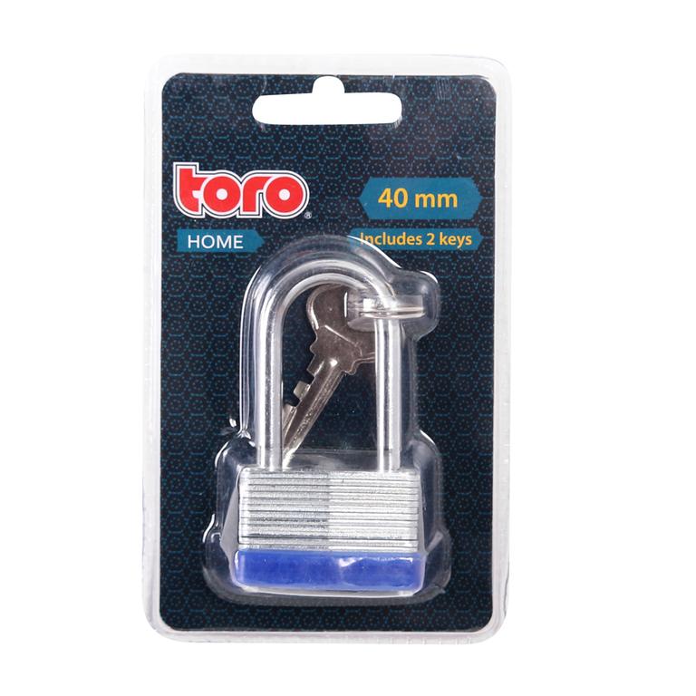Visací zámek dlouhý, šířka 40 mm. Zámek je kovový, vhodný na uzamykání skříněk, sklepů, vrat apod. Balení obsahuje 2 ks klíčů. Oblouk z tvrzené oceli pro lepší odolnost proti prořezání. Barva stříbrná.