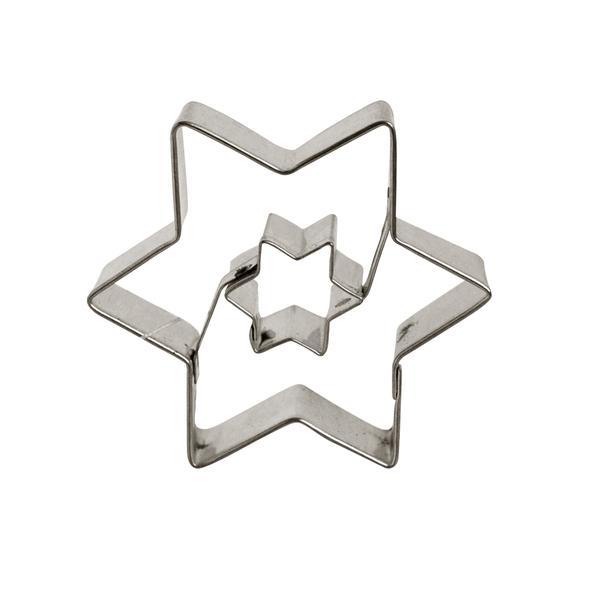 Vykrajovátko - tvar hvězda s hvězdičkou je vyrobeno z pocínovaného potravinářského plechu. Vhodné na cukroví, perníčky, potahové nebo modelovací hmoty. Vykrajovátka jsou od českého výrobce a splňují všechny předepsané normy. Průměr hvězdy - 4,8 cm.