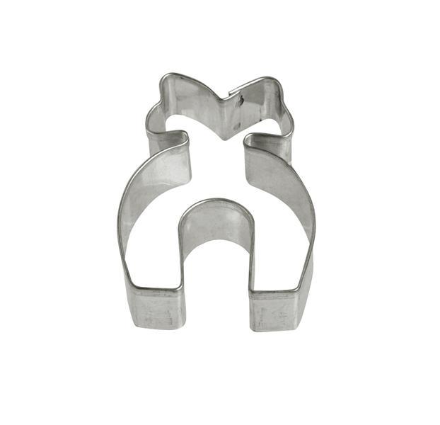 Vykrajovátko - tvar podkůvka s mašlí je vyrobeno z pocínovaného potravinářského plechu. Vhodné na cukroví, perníčky, potahové nebo modelovací hmoty. Vykrajovátka jsou od českého výrobce a splňují všechny předepsané normy. Rozměry - 4,3 x 6,1 cm.