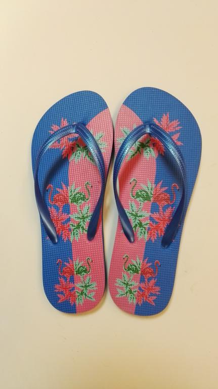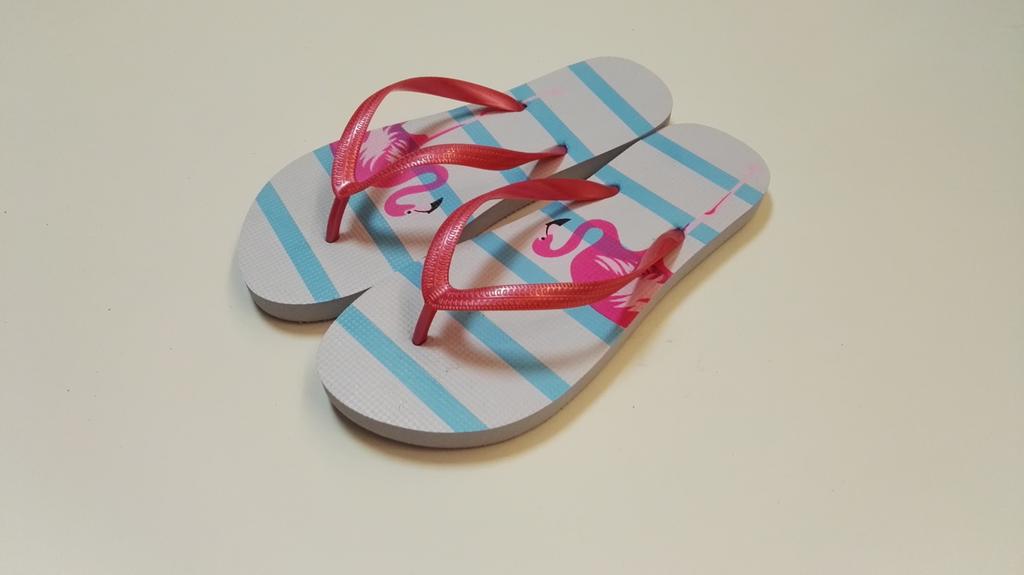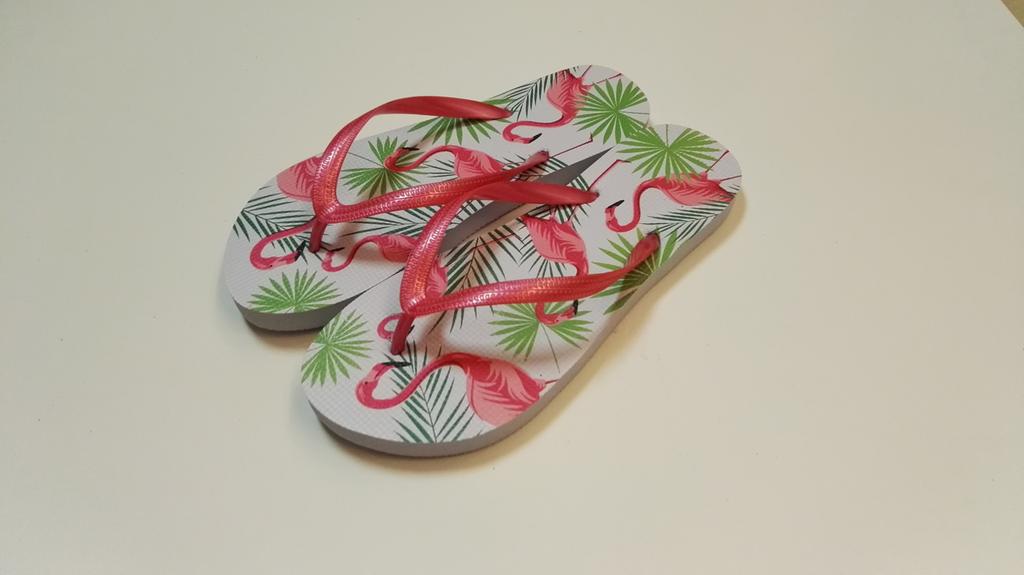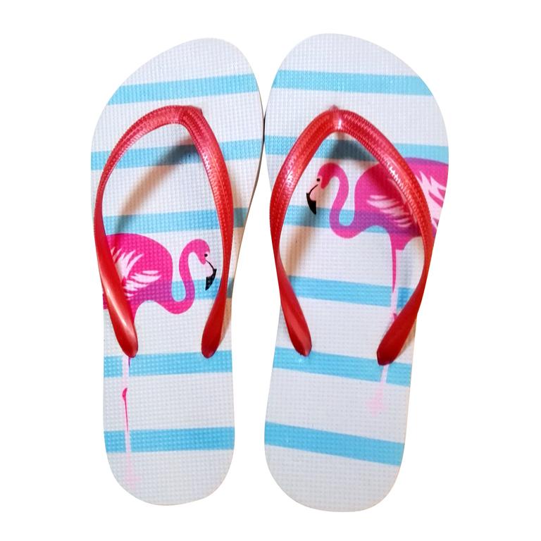 Dámské žabky s velice oblíbeným motivem "Plameňáci". Žabky jsou pohodlná obuv pro horké letní dny, k vodě, ale i na běžné nošení. Velikost EU 38. Délka 25,3 cm. Assort barev.