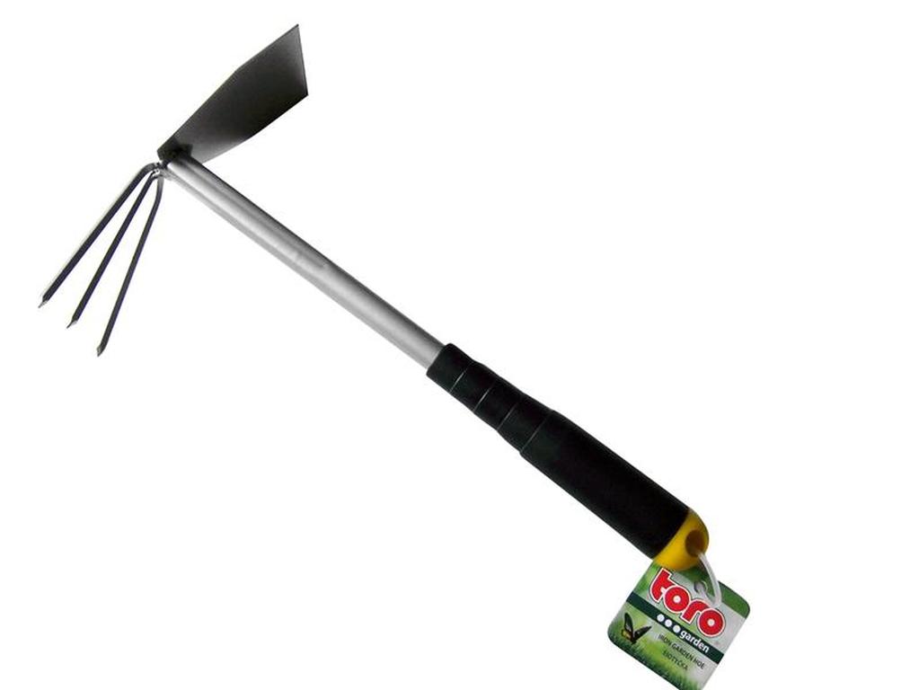 Zahradní motyčka - oboustranná je vhodná ke kypření, okopávání a pletí pomocí 3 háků a ostré hrany motyčky. Kovová s plastovou rukojetí. Délka motyčky - 32 cm.