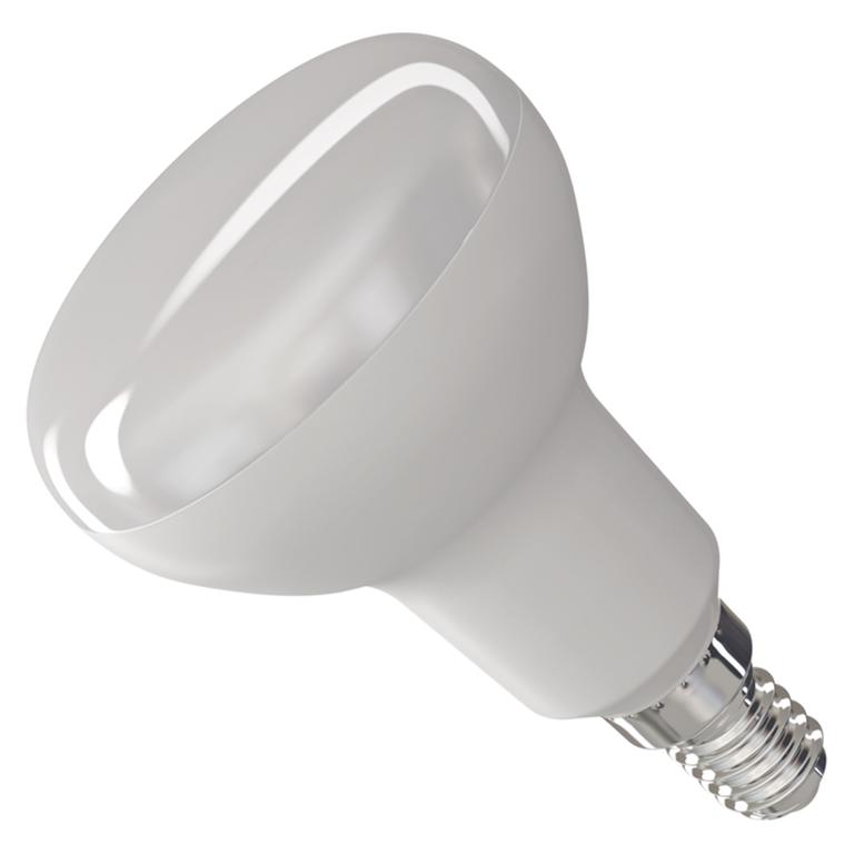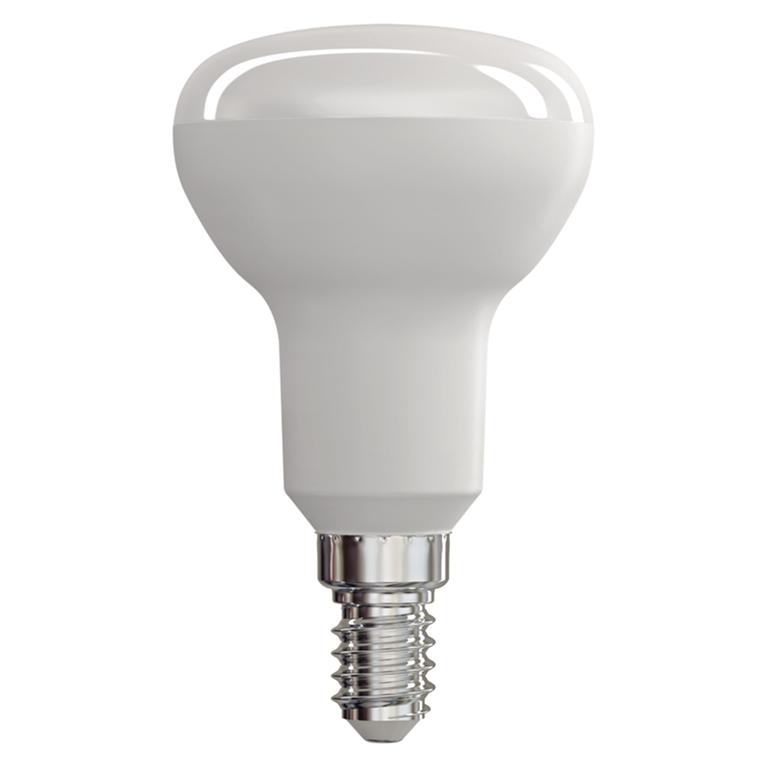 LED žárovka tvaru reflektor R50. Patice E14. Barva teplá bílá (2700 K). Příkon 6 W. Náhrada za žárovku 40 W. Svítivost 470 lm. Úhel vyzařování 120°. Index podání barev (CRI) Ra > 80. Životnost 30 000 hodin. Energetická třída A+.